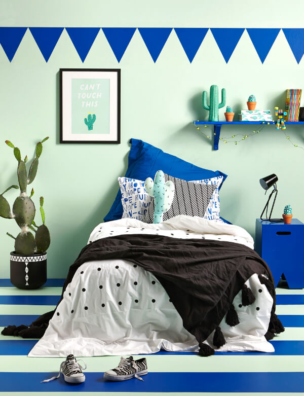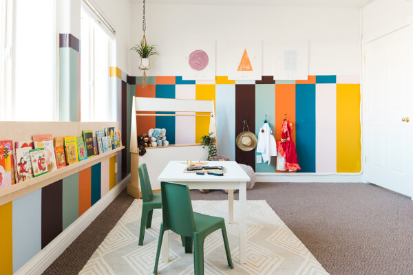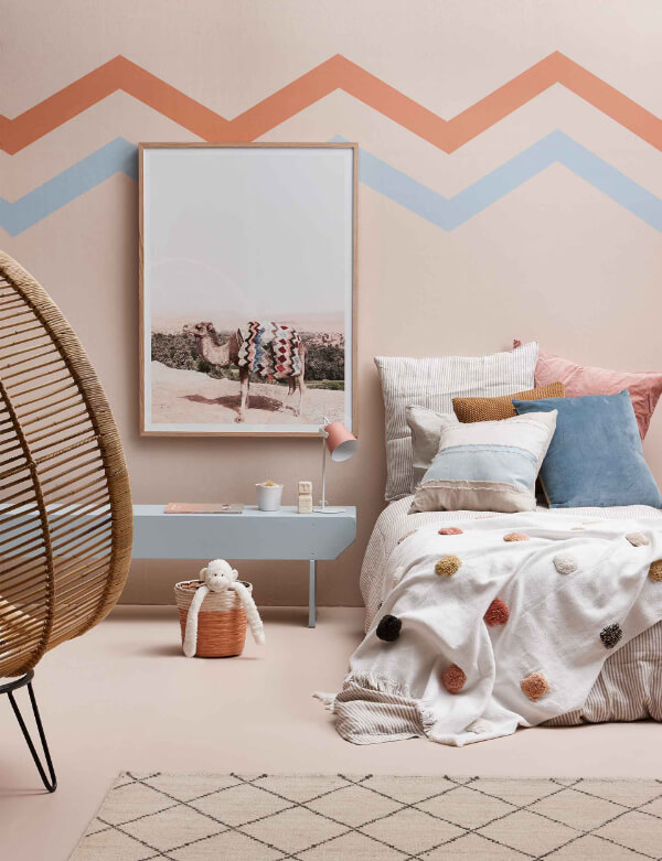 Poziome, pionowe, szerokie, wąskie, na skos - możliwości jest masa, a ta drobna zmiana z pewnością odmieni pokój dziecka. Warto tutaj pamiętać, że paski mają wielką moc i w zależności tego jak je namalujesz tak wpłyną na odbiór pokoju.
