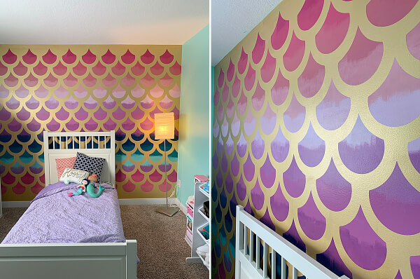 Na koniec zdecydowanie najbardziej pracochłonny pomysł, wymaga dużo czasu i cierpliwości, ale efekt końcowy jest oszałamiający. Jeżeli Twoje dziecko lubi “syrenie” klimaty ta dekoracja z pewnością je zachwyci.
