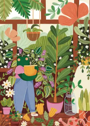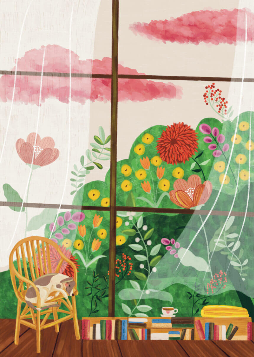 Tworzę bajkowe ilustracje i portrety pełne ciepła i spokoju, które otulają serce jak puchaty kot, w którego można się zawinąć, gdy za oknem pada deszcz. Bardzo lubię spędzać czas w naturze, to pozwala mi ukoić nerwy i spojrzeć na świat z dystansu więc oczywiście, w moich pracach zawsze jest jakiś roślinny akcent.