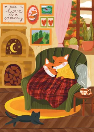 W moich rysunkach kreuję świat pełen miłości, akceptacji, w którym człowiek żyje w harmonii z przyrodą, otulony przytulnymi kolorami, oversize’owymi swetrami w odcieniach cynamonu i ognia w kominku, które niesie w świat zapach mokrych liści i gorącej herbaty.