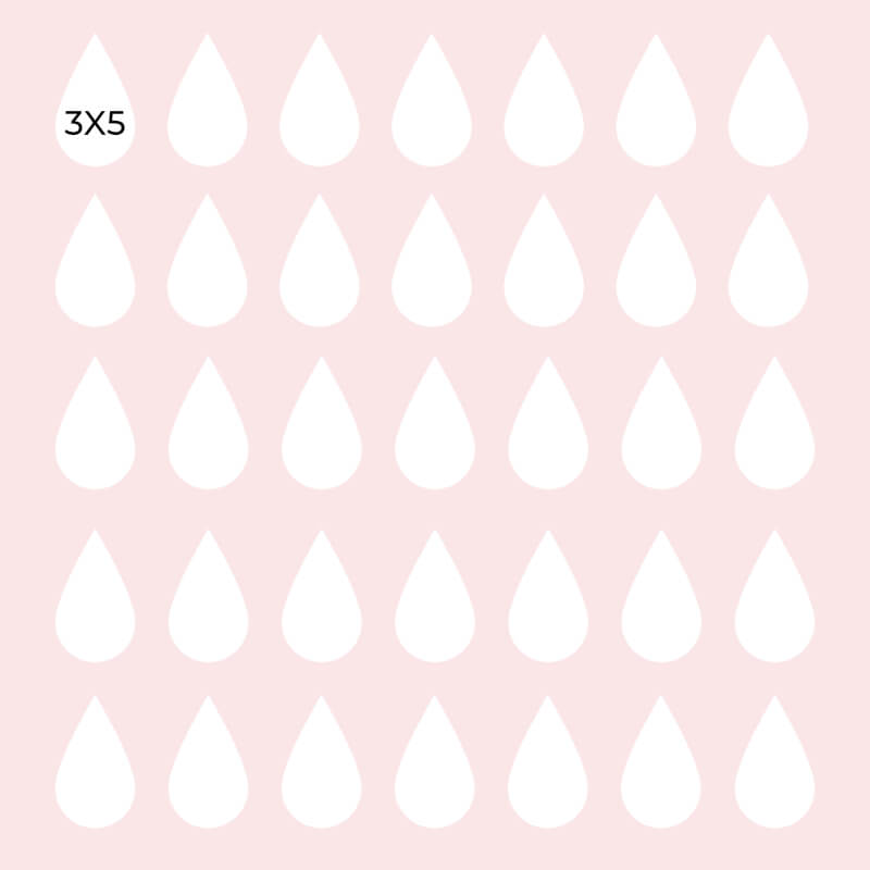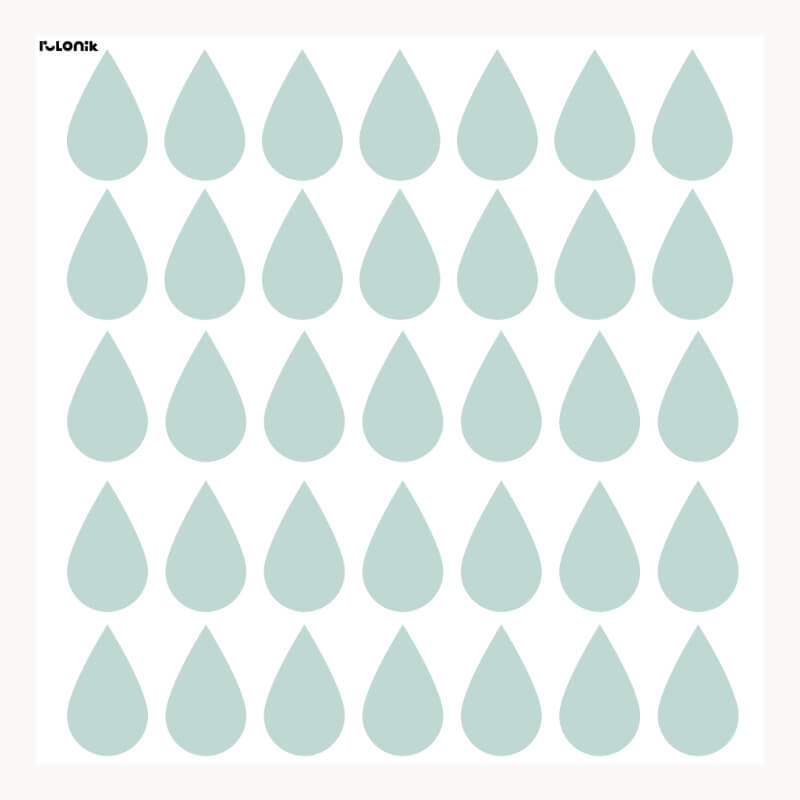 Zestaw zawiera 35 niebieskich kropelek. Naklejki umieszczone są na arkuszu o wymiarach 30 cm na 30 cm. Wysokość jednej kropli wynosi 5 cm. Zaplanuj wspólnie z dzieckiem projekt ściany i baw się naklejaniem. Dekoracja świetnie sprawdzi się przy ozdabianiu ścian, mebli i drzwi.