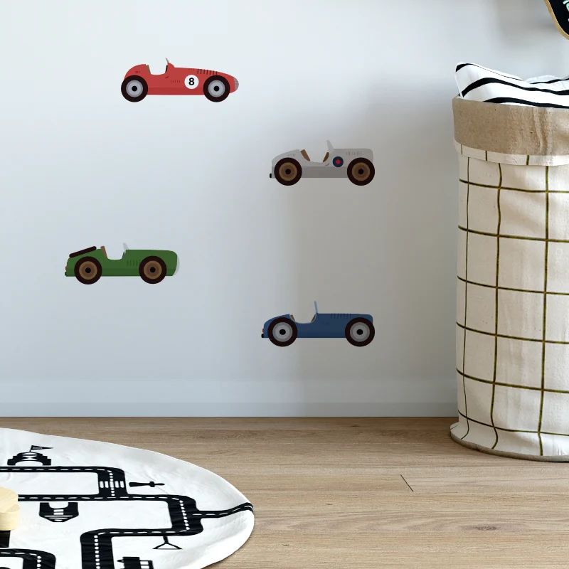 Trzy, dwa, jeden, zero start! Kolorowe autka spieszą się ozdobić Twoją ścianę. Zestaw naklejek 4 autek do samodzielnej aranżacji - wspólnie z dzieckiem zaprojektuj ścianę i baw się naklejaniem - to szybki i efektowny sposób na odmianę dziecięcego pokoju.