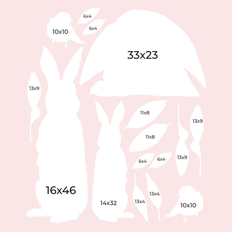 Naklejki są wycinane po obrysie dlatego będą się pięknie prezentować na każdej ścianie. Naklejki umieszczone są na arkuszu o wymiarach 50x60 cm.