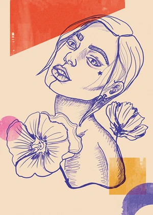Minimalistyczny plakat przedstawiający niebieską postać inspirowany twórczością Henriego Matissea.