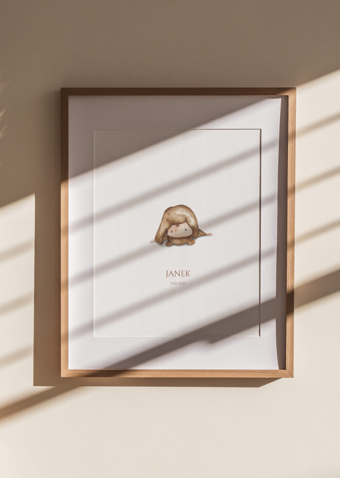 Wprowadź odrobinę magii do pokoju Twojego dziecka dzięki personalizowanemu plakatowi z uroczym motywem. Delikatna ilustracja maluszka w zabawnej pozie to wyjątkowy akcent, który ociepli każdą przestrzeń.