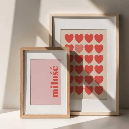 Ten uroczy plakat celebruje miłość i ciepło dzięki swej symplii kompozycji i łagodnej kolorystyce. Na delikatnie beżowym tle ułożono trzy kolumny serc w różnych odcieniach czerwieni i różu, tworząc harmonijną mozaikę, która jest jednocześnie prosta i wyrazista. Motyw serca, uniwersalny symbol afekcji i bliskości, inspirowany może być zarówno popkulturą, jak i minimalistycznym designem. Plakat oddycha spokojem i zarazem niesie pozytywne emocje, przywołując uczucie ciepła i radości. Idealnie wpasuje się do domowej sypialni czy salonu, dodając przestrzeni odrobiny romantyzmu i dobrej energii. Jest równie doskonały dla przestrzeni kreatywnej, gdzie pozytywne emocje są kluczem do inspiracji. Emanujący prostotą i optymizmem, ten plakat będzie zachęcał do refleksji nad miłością w każdym aspekcie życia.